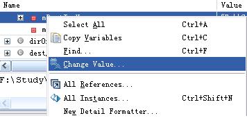 我们可以在变量上右键,选择"Change Value..." 在弹出的对话框中修改变量的值,