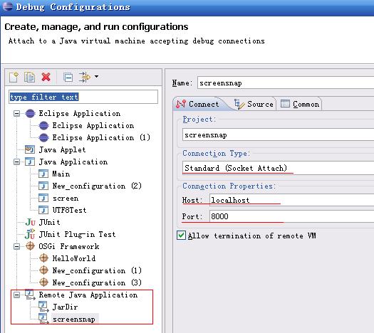连接时远程服务器时,需要在Eclipse中新建一个远程调试程序