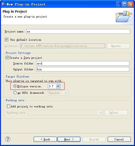 而默认我们的eclipse运行版本是3.7,不能进行正常的代码生成和分区拷贝。