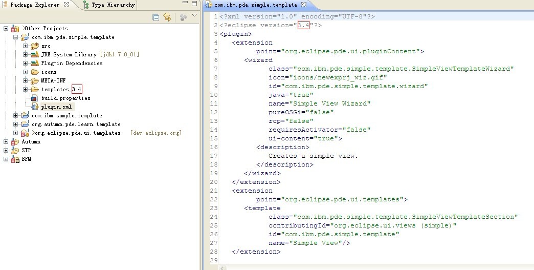 templates目录和plugin.xml这两处的eclipse版本都从3.2改到3.4,这样的话,之前基于eclipse3.2的例子就能进行正常的代码生成和分区拷贝。