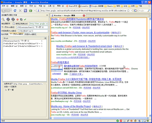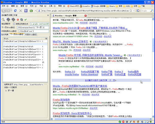 看起来有点罗嗦,其实很简单的,如果网站不太复杂,一般用“自动翻页工作室”多时几次就能应付了,如果网页结构实在混乱,Firefox同样也有其它好用的扩展来辅助创建XPath。