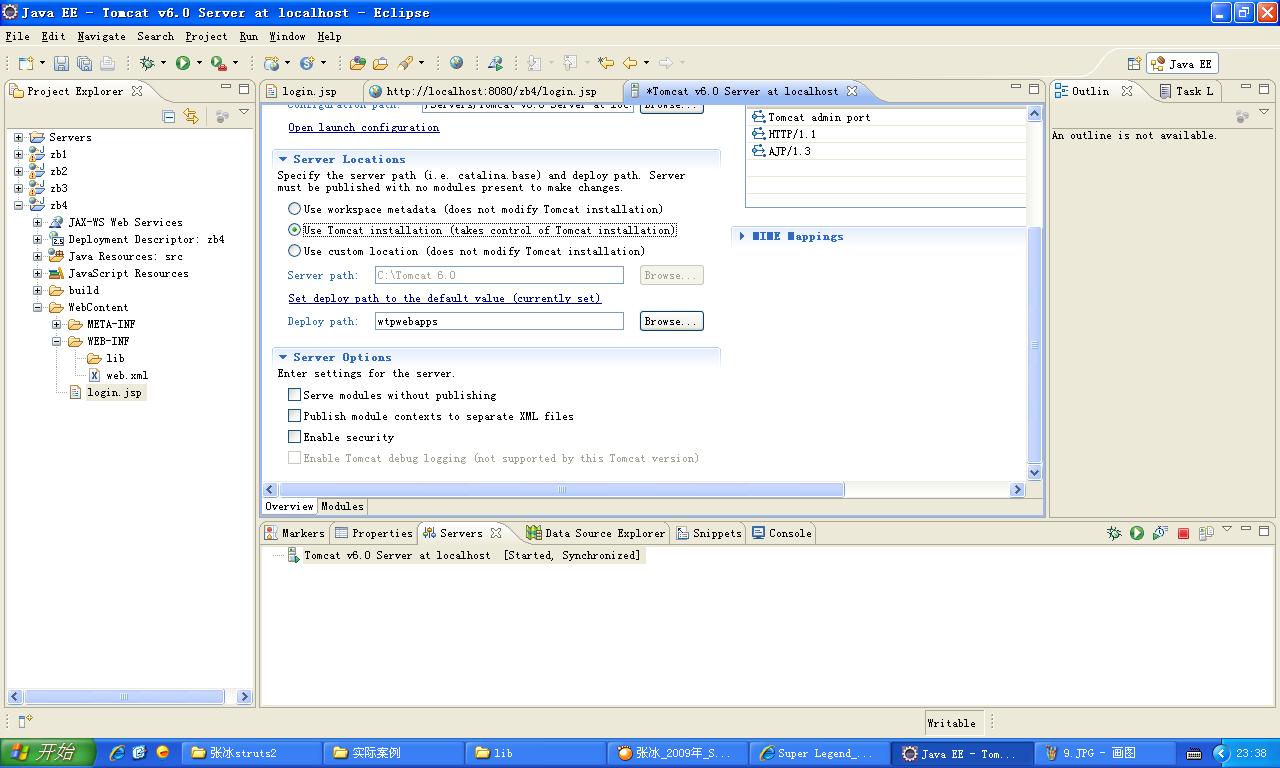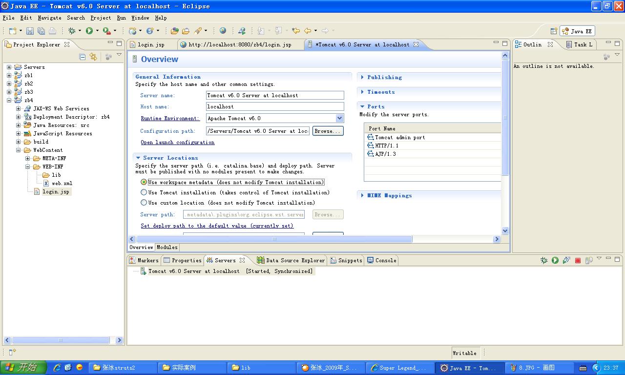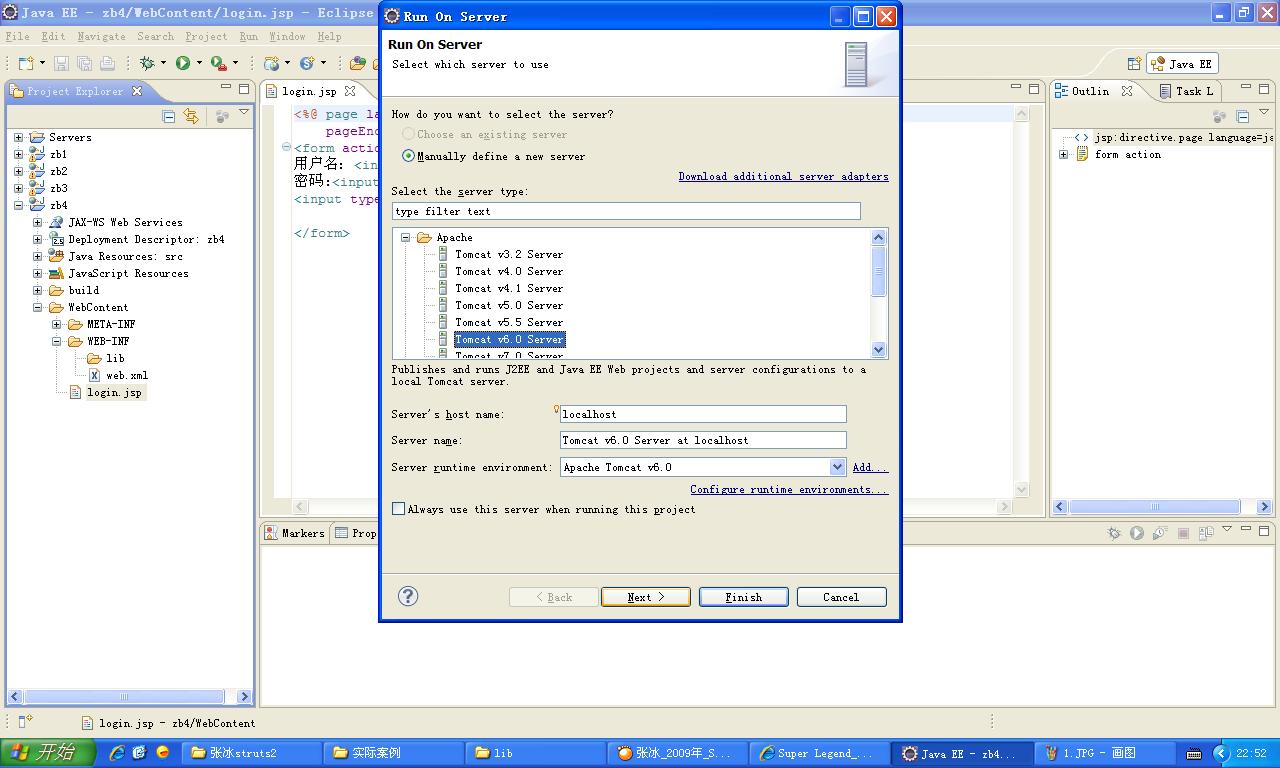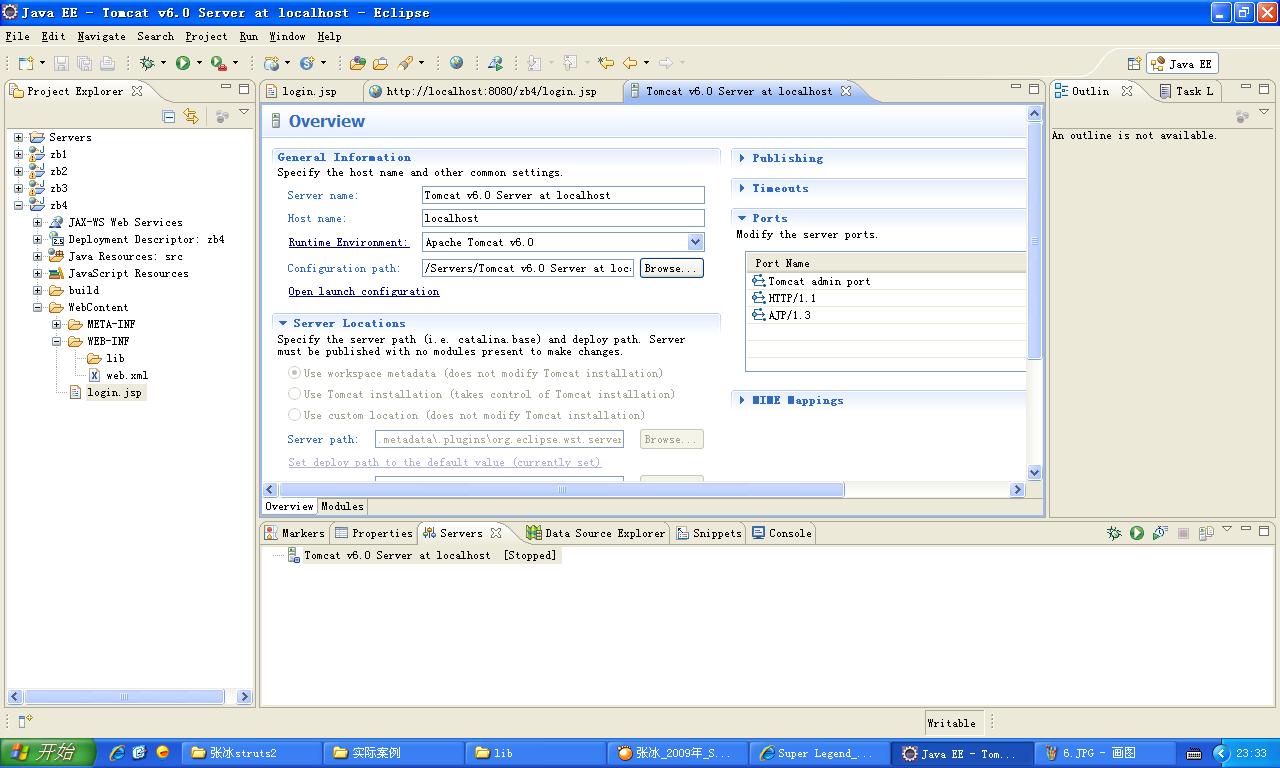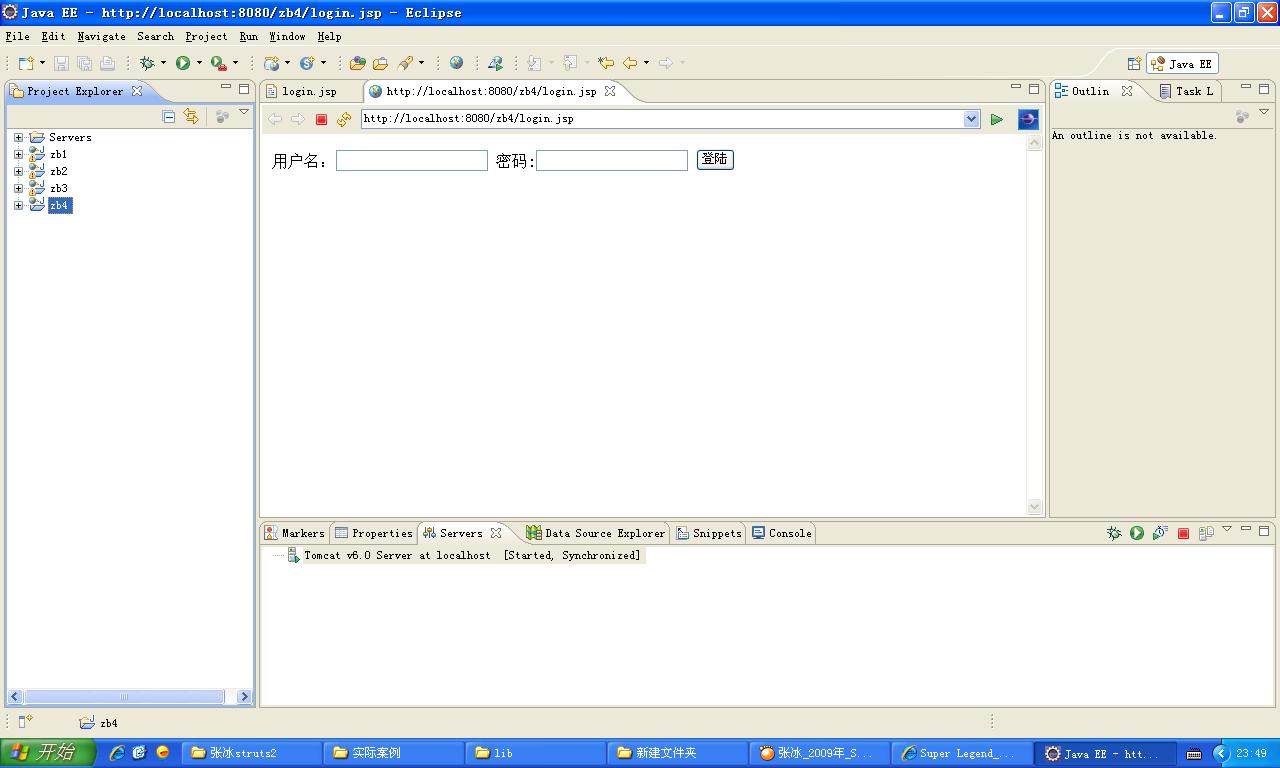 新建个Dynamic Web Project,命名为zb4,在WebContent下,新建个文件login.jsp,随便写段代码,比如我的