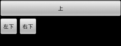 <Button android:layout_width="fill_parent" android:layout_height="fill_parent" android:text="上" /><LinearLayout xmlns:android="http://schemas.android.com/apk/res/android" android:orientation="horizontal" android:layout_width="wrap_content" android:layout_height="wrap_content" > <Button android:layout_width="wrap_content" android:layout_height="wrap_content" android:text="左下" /> <Button android:layout_width="wrap_content" android:layout_height="wrap_content" android:text="右下" /> </LinearLayout>