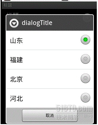 activity代码:package cn.com.chenzheng_java.pref; import android.os.Bundle; import android.preference.ListPreference; import android.preference.PreferenceActivity; import android.preference.PreferenceManager; import android.util.Log; /** * @description 有关首选项preferences的研究 * @author chenzheng_java * @since 2011/03/29 * 继承了PreferenceActivity我们可以方便的对preference进行操作。 * 例如可以通过getPreferenceManager获取首选项管理器 * 那,我们可不可以不继承PreferenceActivity呢?当然可以,你还记得不记得,实际上Activity类中 * 就有个SharedPreferences getSharedPreferences(String name, int mode)方法呢,我们通过它 * 也可以对preference进行操作。当然了,如果我们不继承PreferenceActivity的话,那么我们就要手动的 * 对数据进行保存了。而不是跟现在一样,会自动的根据你的选择项进行数据保存。 * 那么,preference在这里是怎么样进行自动保存的呢,答案很简单,那就是在addPreferencesFromResource方法的具体实现中! */ public class MyPreferencesActivity extends PreferenceActivity { @Override public void onCreate(Bundle savedInstanceState) { super.onCreate(savedInstanceState); addPreferencesFromResource(R.xml.mylistpreference); /** * getPreferenceManager返回首选项管理器对象 */ PreferenceManager manager = getPreferenceManager(); // 根据android:key中指定的名称(相当于id)来获取首选项 ListPreference listPreference = (ListPreference) manager.findPreference("myListPreference"); Log.i("存储的值为", ""+listPreference.getValue()); } } <?xml version="1.0" encoding="utf-8"?> <!-- 对于该文件需要注意以下几点 第一:位置。该文件的位置是在res/xml/下的。 第二:格式,PreferenceScreen为根标签,ListPreference为子标签 第三:标签属性含义 android:key 唯一标识符,和android:id相类似,PreferenceManager可以以其为参数通过findPreference获取指定的preference android:title 整个屏幕的标题 android:summary 选项的简单说明 android:entries 弹出的对话框中,列表显示的文本内容,注意哦,这里指定的是一个数组哦 android:entryValues 与android:entries相对应的值 android:defaultValue 当对应值不存在时的默认值 android:dialogTitle 弹出的对话框中的标题信息 --> <PreferenceScreen xmlns:android="http://schemas.android.com/apk/res/android" android:key="screen_list" android:title="标题" android:summary="说明摘要" > <ListPreference android:key="myListPreference" android:title="标题" android:summary="说明摘要" android:entries="@array/list_entries" android:entryValues="@array/list_entries_value" android:dialogTitle="dialogTitle" android:defaultValue="@array/list_entries_value2" ></ListPreference> </PreferenceScreen>