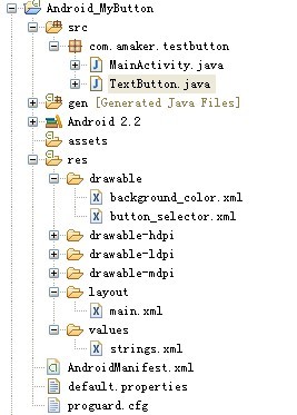 package com.amaker.testbutton;import android.content.Context;import android.util.AttributeSet;import android.view.MotionEvent;import android.view.View;import android.widget.TextView; import android.widget.Toast;public class TextButton extends TextView { public TextButton(Context context) { super(context); } public TextButton(Context context, AttributeSet attrs, int defStyle) { super(context,attrs,defStyle); } public TextButton(final Context context, AttributeSet attrs) { this(context,attrs,0); this.setOnTouchListener(new OnTouchListener() { @Override public boolean onTouch(View v, MotionEvent event) { if(event.getAction()==MotionEvent.ACTION_CANCEL ||event.getAction()==MotionEvent.ACTION_UP ||event.getAction()==MotionEvent.ACTION_OUTSIDE) { Toast.makeText(context, "hello", Toast.LENGTH_SHORT).show(); } return false; } }); }}package com.amaker.testbutton;import android.app.Activity;import android.os.Bundle;public class MainActivity extends Activity { /** Called when the activity is first created. */ @Override public void onCreate(Bundle savedInstanceState) { super.onCreate(savedInstanceState); setContentView(R.layout.main); }}