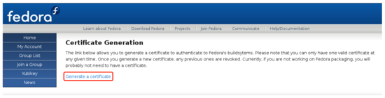 要注意的是,上传之后大概一个小时才能够生效。至此,我们的注册过程基本上告一段落了,我们此时已经拥有了所需的Fedora账号。接下来,我们便可以让Fedora生成客户端证书了,这个证书将会放在你自己的电脑上,当你在Fedora社区中工作时,将会经常使用到这个证书。