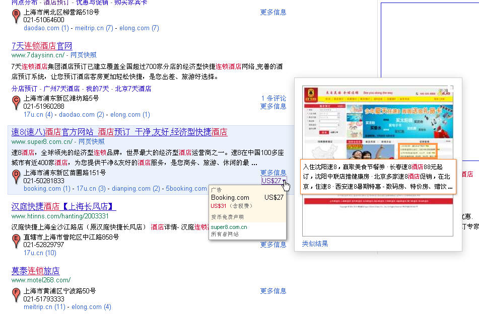 谷歌的hotelfinder第一个关联的产品是谷歌地图,将酒店信息定位在谷歌地图上,这一步的技术整合过程我们已经发现有些滞后了(恰恰是我们关注的时候)。