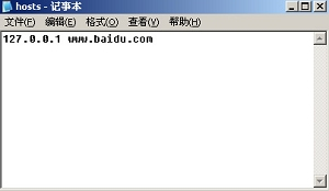 现在我要屏蔽一个网站http://www.baidu.com/,那么我只需要在这个HOSTS文件里输入127.0.0.1 http://www.baidu.com/保存即可。