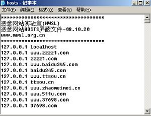 1、每个用户都可以用记事本打开这个文件,自己添加修改恶意网站列表。