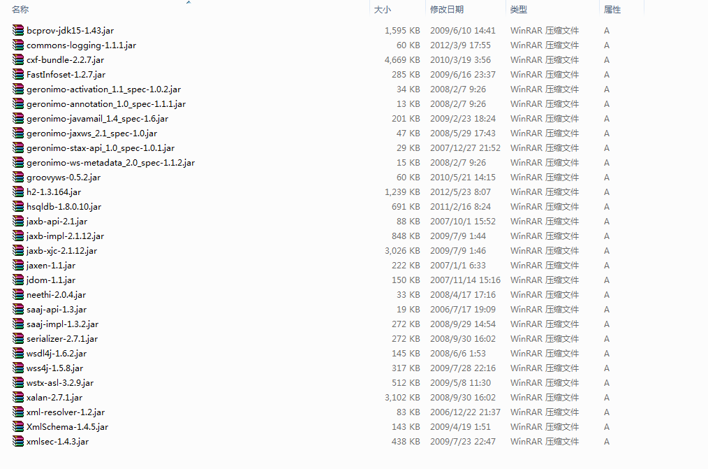 其中的h2-1.3.164.jar、hsqldb-1.8.0.10.jar不是必须的!
