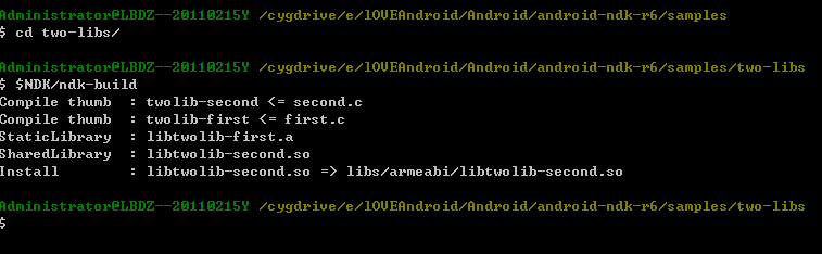 $ $NDK/ndk-build(注意是$NDK/ndkbuild,这是个命令)