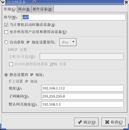 在静态IP那一栏,像设主机IP一样设置好,确定