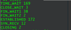 查看linux服务器的网络链接情况netstat -n | awk /^tcp/ {++S[$NF]} END {for(a in S) print a, S[a]}