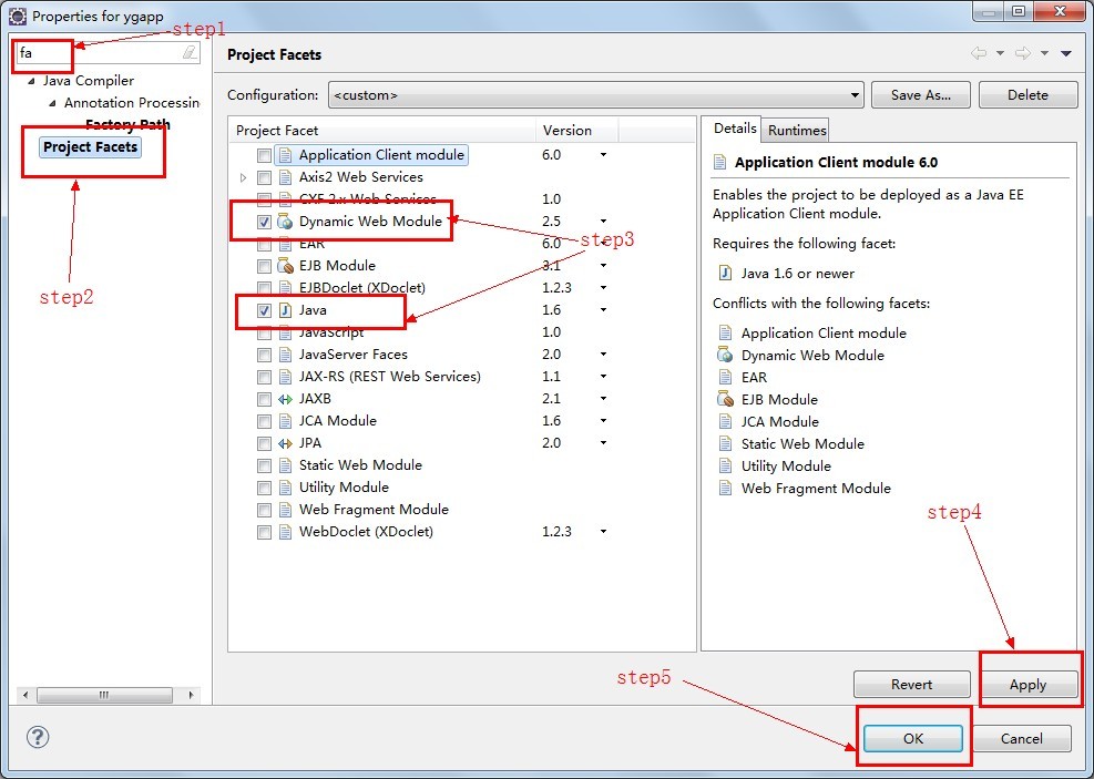 step2. Select ‘Project Facets’