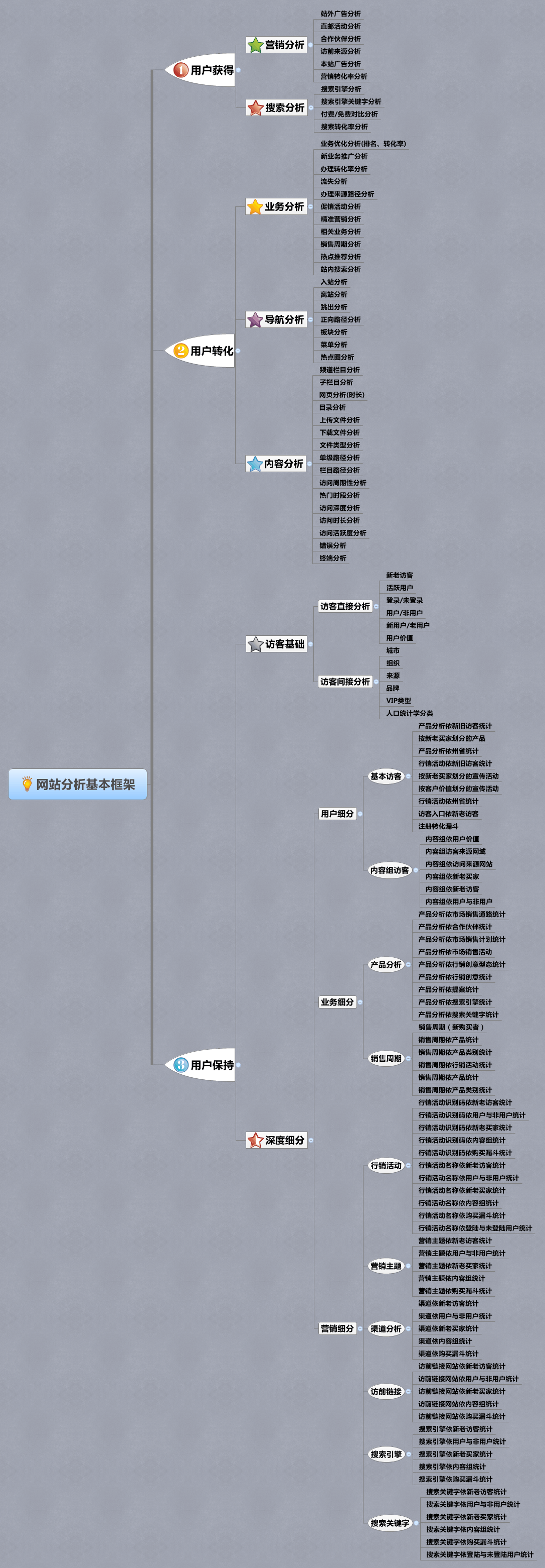 数据分析在网站运营和营销环节中的细节 网站运营的方方面面需要用到数据,网站也积累的大量的数据;不是有了数据就能运营的好,要对这些散落在各处的数据做分析,才能发挥出他应有的力量。怎样做数据分析呢?下面给出一个指导性的思路:以上的数据分析维度只是总体的思路,在应用在网站的运营过程中需要根据自身的情况有所取舍,关键是要抓住主要问题,不要为了数据分析而做数据分析,一定要有强烈的目标导向。