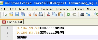 但是惊讶的发现这个看似空格的却不能用上面的方法移除掉,然后我把它复制到Notepad++中,然后选中view->show symbol->show all charaters,结果如下图 SUB,CRLF:
