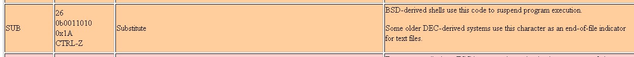 这下就可以明白为什么用去空格方法去不了了,因为它本身不是一空格。经过查资料,才发现它所对应的是Ctrl+Z,即ASCII值是26,所以正确的解决办法就是: