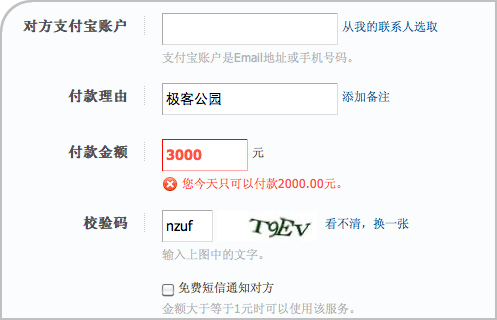 6、B在Google中寻找到了解决方法,他必须成为支付宝证书用户,那样就可以一次性转账3000元了。