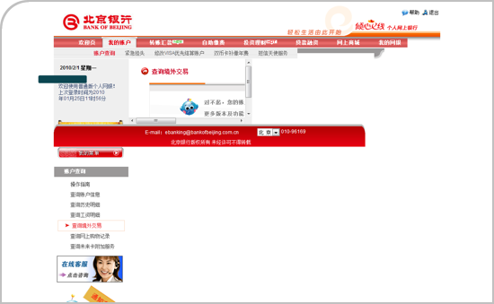 有些银行,比如北京银行,不仅对IE情有独钟,它对IE6更是恋恋不舍。如果用IE8登录北京银行,后台将是一团乱,如下图所示: