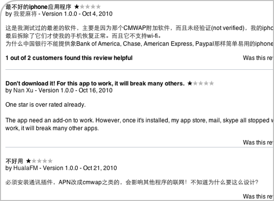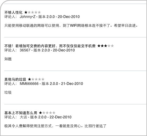 作为一台iPhone,不使用WiFi是一件浪费感情的事;作为一个银行客户端,不能使用银行卡号,而必须使用自定义ID登录是一件让人无语的事情;作为一个iPhone上的应用程序,需要用户另外安装通信插件才可使用,这是一件荒谬的事情。更可笑的是,该客户端为中国移动和中国联通用户提供相应的“通信插件”,但没有为“中国电信”用户提供。