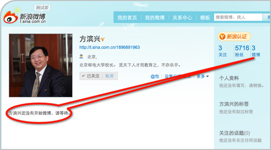 当被称为“GFW之父”的北邮校长方滨兴驾临的新浪微博时,很多人去新浪微博对方滨兴表达的不齿。这些表达都被新浪方面删除了。然而,也有一些正常的向方校长打招呼的微博被删除,新浪方面为了避免麻烦,干脆一刀切,删除所有给方校长的微博回复。