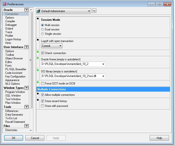 OCI Library:D:\PLSQL Developer\instantclient_10_2\oci.dll