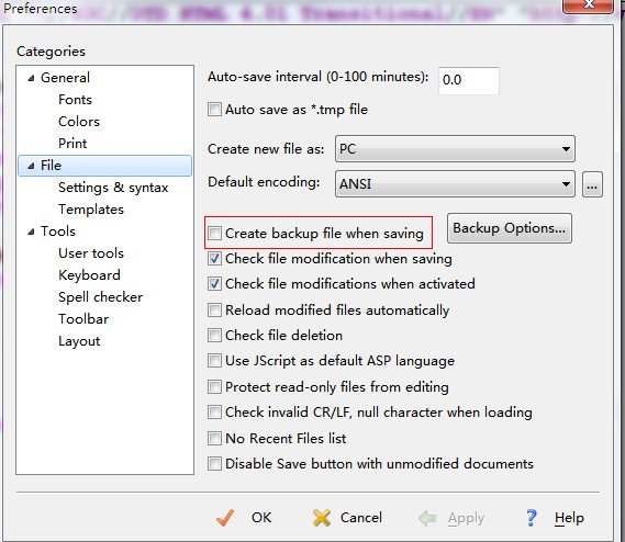 解决Editplus保存时出现.bak文件的问题 第一步选中tool菜单中的configure user tools第二步在该设置对话框中选中file里面有create backup file when saving把复先框中的钩去掉就行了[size=medium][/size]