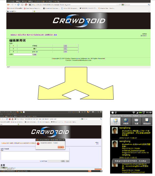 新增“禁用词禁止推送”功能的版本<<面向企业内部的微博系统 Crowdroid for Business 1.3>>已经发布