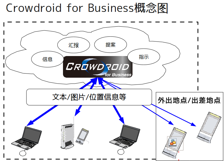 “Crowdroid for Business”是英文单词“Crowdsourcing”与“Android”的组合而成的一个创新词,以利用Twitter为首的微博开始,在 Android终端设备与PC之间轻易地实现“报、联、商”功能、轻易地在公司内部实现知识和信息的实时共享,迅速且安全。对于那些采用了营业支援工具及协同组合软件但并未真正活用其功能的或未考虑信息的实时性等而感到烦恼中的企业客户来说,是一款相当值得推荐使用的软件系统