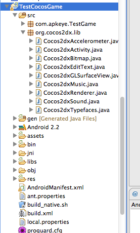 两个eclipse 结合 对于mac 平台,我使用的是两个eclipse来编写cocos2dx的程序,一个专门写java,一个专门写c++。我习惯使用eclipse, 也可以在eclipse中下载cdt插件在 继承ndk开发环境。 java版本eclipse中对应的项目
