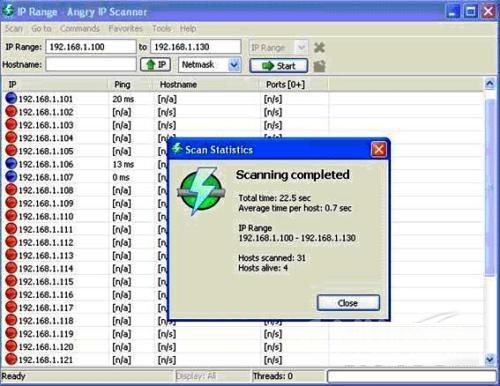 Angry IP Scanner是一个轻量级的工具。它无需安装,易于使用。用户只需要输入IP地址范围,单击“Start”进行扫描。过一段时间,就会看到网络中的所有设备列表,包括主机名和所开放的端口。下面我们给出这个软件的一些大概的用途: