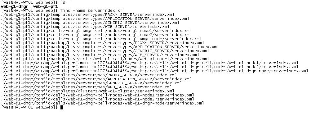 [was@HA5-WT01 web_web]$ cat ./web-g1-pf1/config/cells/web-g1-dmgr-cell/nodes/web-g1-dmgr-node/serverindex.xml