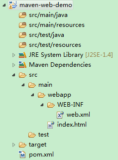 如maven-web-demo这个项目实例。该项目的目录结构如下图所示: