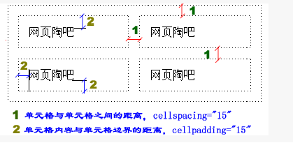 在表格美化中用的最多的估计就是细化表格的边框,细化边框与table的cellspacing属性息息相关;在table中还有个很容易与cellspacing混淆的属性叫做cellpading,他们的区别如下图所示: