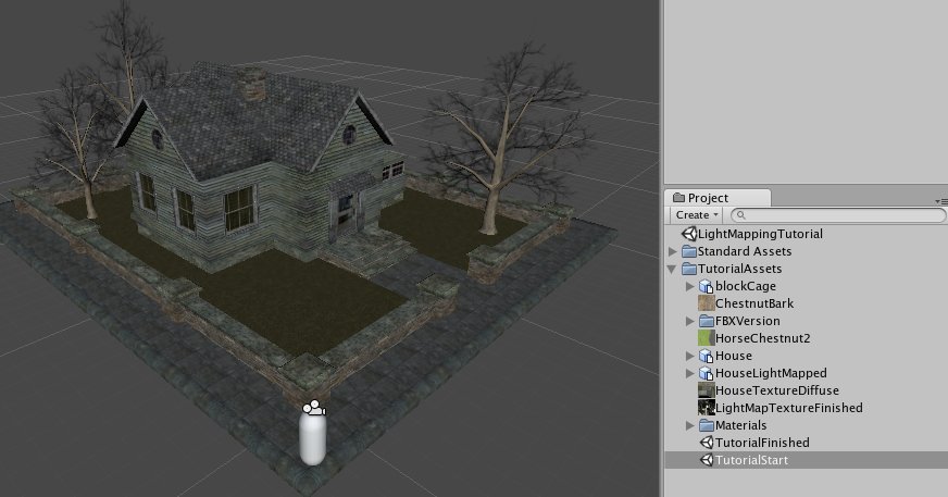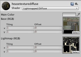 ? 选中 “HouseMesh” 把材质类型改为“Lightmapped/Diffuse”.