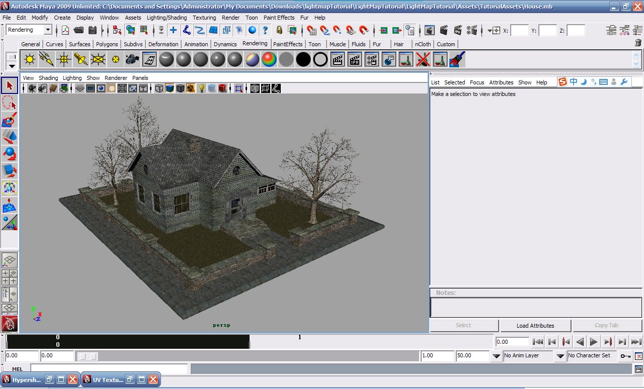 最后,把lightmap材质再赋一次给房子。