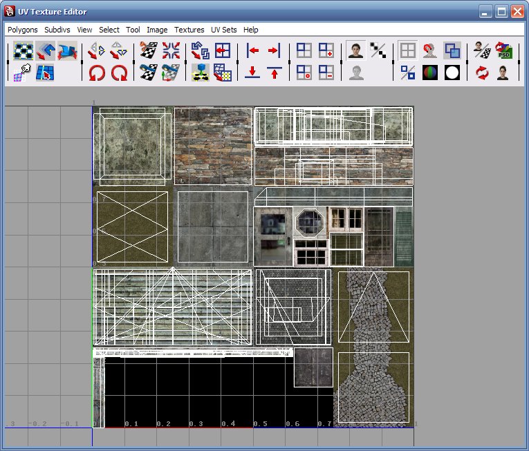 还有重要的一步是调整好对应的UV,选择房子,单击右键UV Sets/UV Linking...