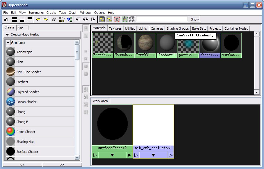 回到Hypershade Window,材质窗口,生成一个新的Lambert材质,名为LightMap;