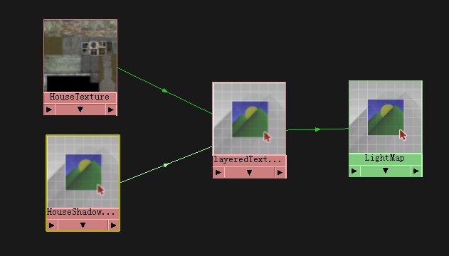 ? 生成一个层材质Layered Texture通过default默认方式连接到“LightMap” Material.