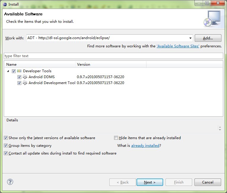 下载网站http://dl.google.com/android/ADT-0.9.7.zip (最新网址请参考