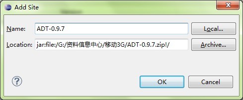 然后在进入下图 点击 Archive 按钮 选择ADT-0.9.7.zip即可其他步骤类似上面。在此不再详述。