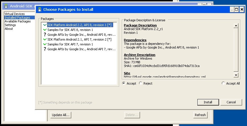 选择 Available Packages 然后选择你要安装的sdK包,最后按 Install Selected 按钮进行安装。
