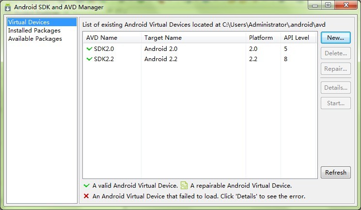 然后选择 Virtual Devices,按new 按钮 创建虚拟设备
