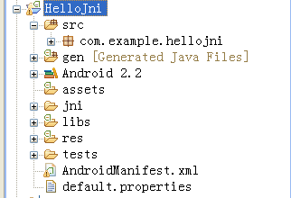 hello-jni 例子是展示如何在Android应用中用JNI的简单的例子。这个例子的功能是接受来自C程序的字符串,并显示。