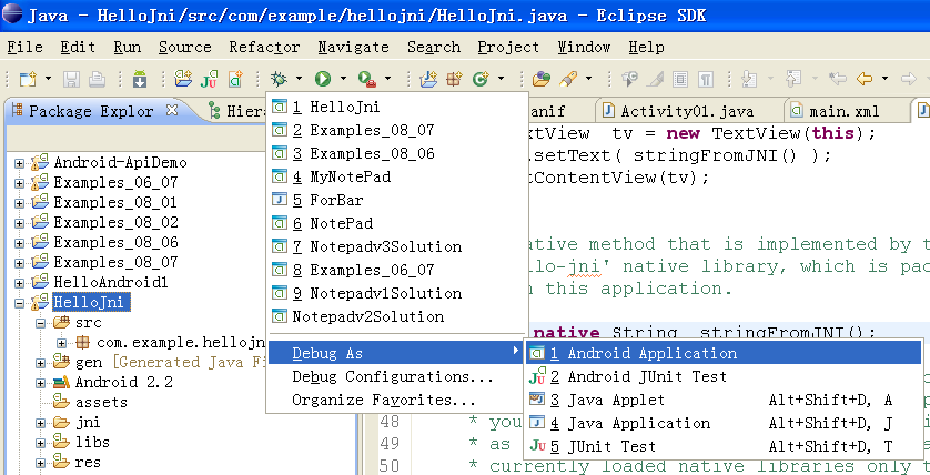 编译运行sample中HelloJni