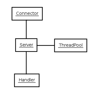 Server: Connector和Handler的容器,它通过配置或者编程的方式组装Connector和Handler集合,并管理它们的声明周期。同时server还是线程池的管理者,向Connecotr和Handler提供线程池的服务。