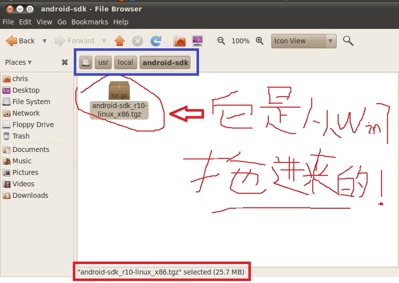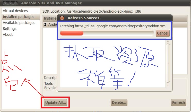 第一步,在/usr/local目录下创建android-sdk文件夹,