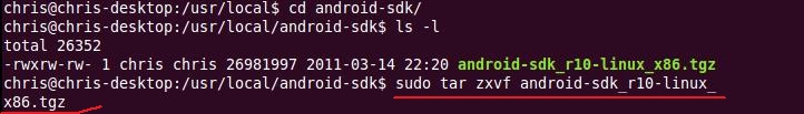 sudo tar zxvf android-sdk_r10-linux_x86.tgz