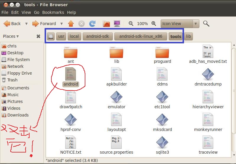 android-sdk-linux_x86文件夹,双击“android”文件打开