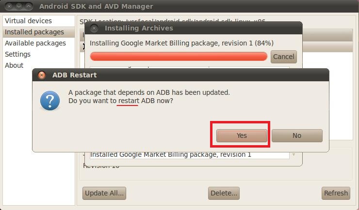 安装完成之前会提示我们重启ADB,点击“Yes”